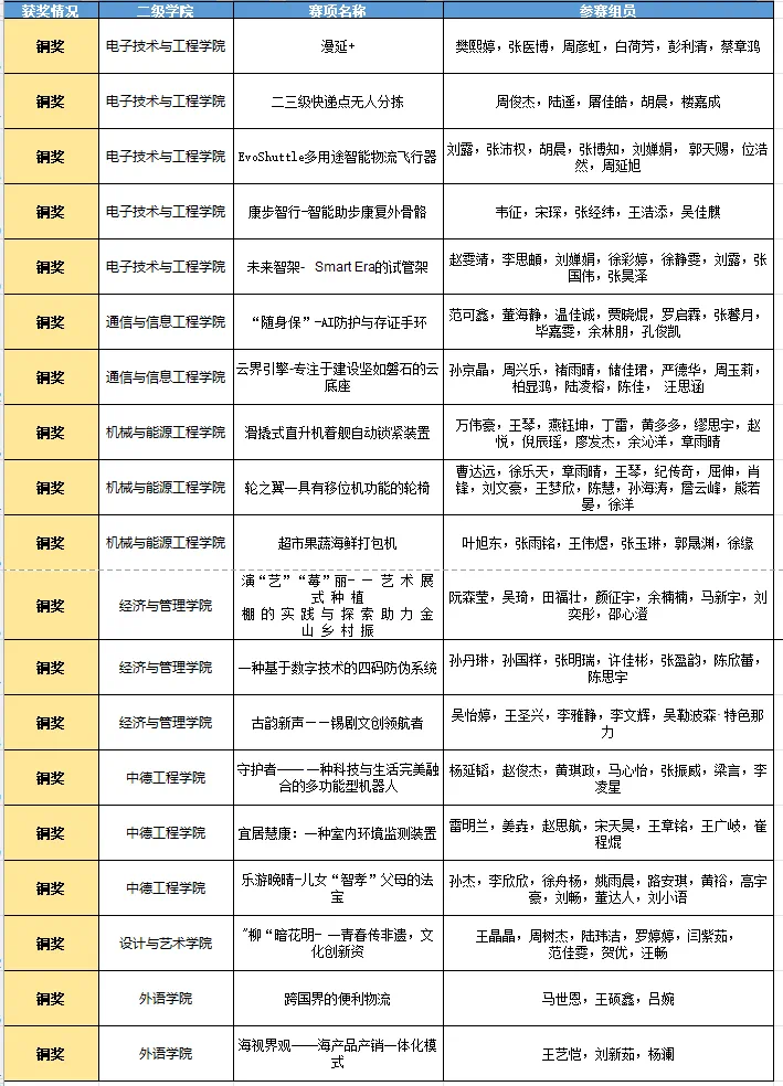 我校对此次大赛的备赛参赛工作给予了高度重视。自4月份起,学校启动了系列落地宣传及宣讲活动,进入5月份,组织了多场备赛培训课程,至6月份,举办了校级选拔赛事。在各相关二级学院大力支持下,我校最终提交了4000余个项目参赛,其中电子技术与工程学院荣获校级选拔赛“先进集体”称号。经过市级复赛、市级决赛网评、线下路演答辩以及网上公示等环节,我校共有41个项目在市级职教赛道项目中获奖,其中金奖1项、银奖10项、铜奖19项和优胜奖11项。此外,我校还荣获“优秀组织单位”称号。