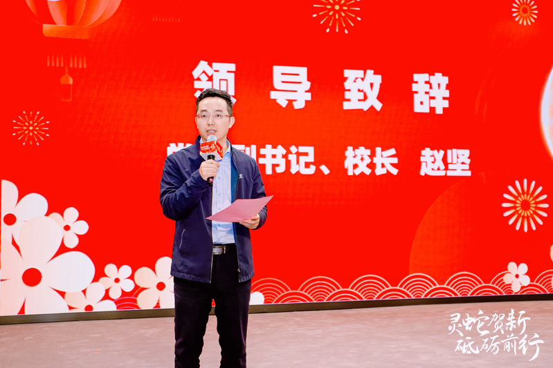 党委副书记、院长赵坚在讲话中回顾了2024年学校发展取得的成果。赵坚指出,2024年学校扎实开展党纪学习教育,以立德树人为根本任务,围绕攻坚克难、创新发展、凝心聚力三大主题推动学校全面发展,在人才培养、产教融合、师资培养、社会服务、国际交流、文化建设、群团工作、学生工作、档案工作、信息化等方面实现了全面提升。他寄语全体师生员工2025年要以更加饱满的热情和更加坚定的信念,迎接新的挑战和机遇,共同创造美好的明天。