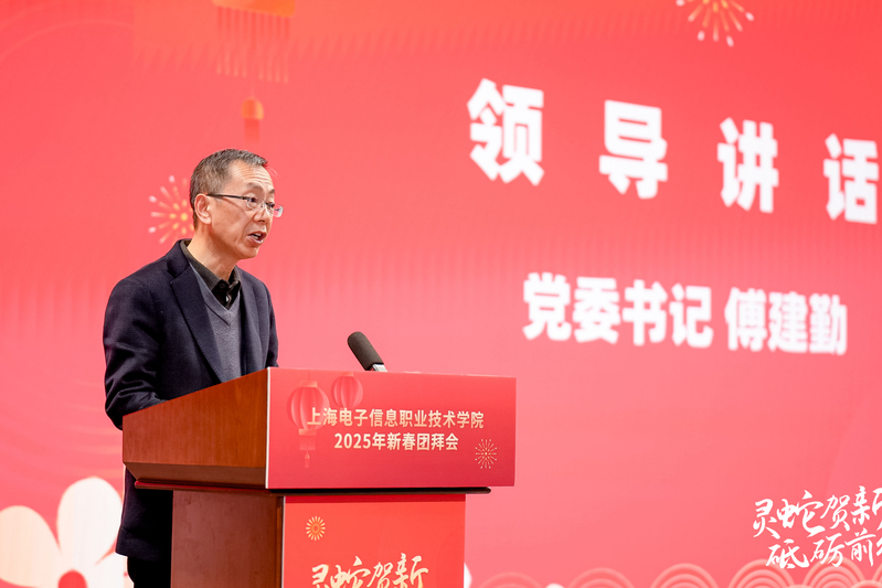 党委书记傅建勤致新年贺词。他代表学校党委向为学校发展倾注心血和汗水的全校师生和校友、教职工家属表示衷心的感谢和最美好的新年祝福。傅建勤强调,2025年是学校建校65周年和学校党代会精神贯彻之年,学校要坚持以习近平新时代中国特色社会主义思想为指导,深入贯彻落实党的二十大、二十届三中全会精神、全国教育大会和学校党代会精神。希望全校干部、师生员工要心怀“国之大者”,服务“校之要事”,推动 “强党建”“创新双高校”“建职业本科大学”等各项工作稳中有进、稳中有为。在服务“国之大计、党之大计”中展现电子信息学院担当,在回答“强国建设,电子信息何为”中贡献电子信息学院力量。希望大家以向上姿态、一流业绩书写“强国建设、电子信息有为”崭新答卷。