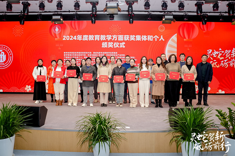 祥龙摆尾辞旧岁,瑞蛇昂首启新程。12月27日下午,在2025年元旦、春节来临之际,学校2025年新春团拜会在新实训大楼报告厅隆重举行。学校领导班子、中层干部、工会干部、教师代表、退休老同志代表、留学生代表、受表彰人员等200人欢聚一堂,共话发展,畅想未来。