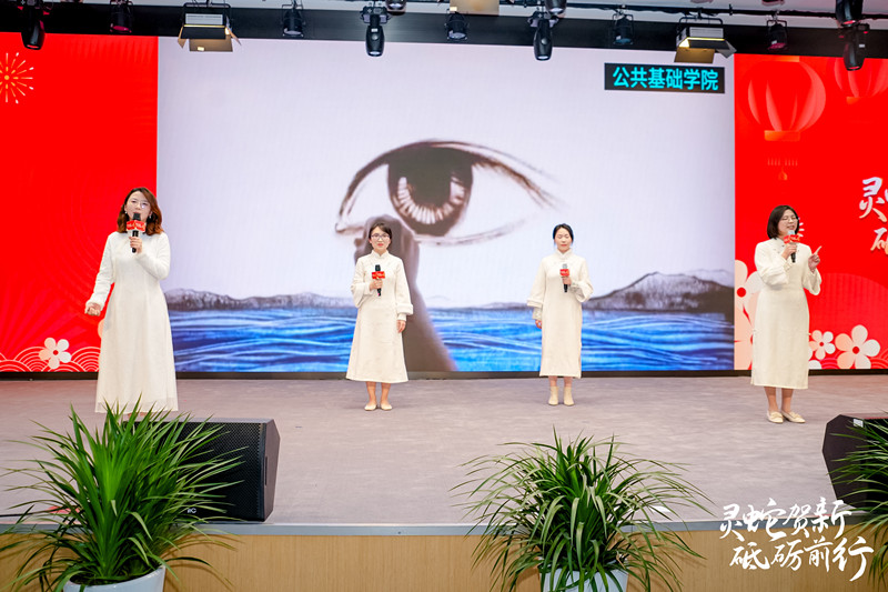 来自后保处工会老师带来的歌曲《上春山》拉开了团拜会文艺演出序幕。基础学院工会老师带来的深情朗诵《匆匆》让在场师生感受到了岁月沉淀和生命厚重。通信学院老师带来的器乐合奏《浮光》将欢乐与美好祝愿传递给在场的每一位观众。机关工会、贯通学院工会、后保处工会老师带来的歌曲《喜欢上海的理由》和沪语配音《繁花》让师生们领略了上海独特的语言魅力和文化底蕴。泰国留学生的精彩合唱《上海欢迎你》,唱出了国际青年对“一带一路”倡议的认同和礼赞。贯通学院工会老师带来的朗诵《木兰辞》表达了深厚的爱国情怀。机关工会的老师演绎民族舞《麦西莱甫》感受少数民族的异域风情和民族团结一家亲。经管工会带来的歌曲《明天会更好》,唱出了携手并进、共同努力,迎接更加美好的明天!基础学院老师带来的独唱《不忘初心》将团拜会的气氛推向高潮,表达了电子信息学院师生不忘初心、开拓创新、奋发进取、真抓实干的精神风貌,表达了建设上海特色、国内一流、国际水平的职业技术大学的坚定信心。