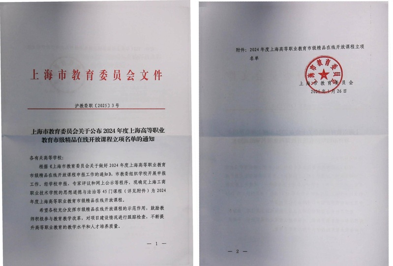 近日,上海市教育委员会公布了《2024年度上海高等职业教育市级精品在线开放课程立项名单》,经学校申报、专家评议和网上公示等程序,我校《习近平新时代中国特色社会主义思想概论》《商业摄影》和《数字电子技术与应用》等三门课程获批立项建设。