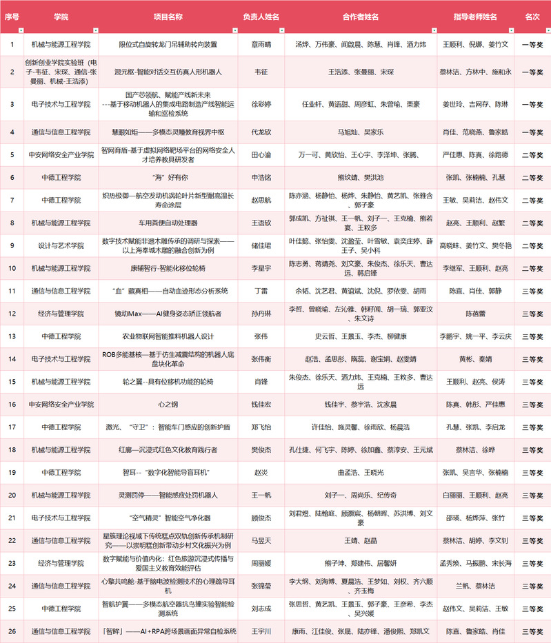 科技点燃梦想,挑战铸就未来。此次校内选拔赛的圆满举行,不仅让广大青年学子深入领悟了科技创新内涵,也为他们今后成长与进步打下了坚实基础。“挑战杯”竞赛是我校培育创新型人才的重要平台,未来,学校将全力备战市赛,为选拔出的12个优秀项目做好优化、完善等工作,期待各团队持续发扬探索钻研精神,在市赛中取得优异成绩!(供稿:校团委)