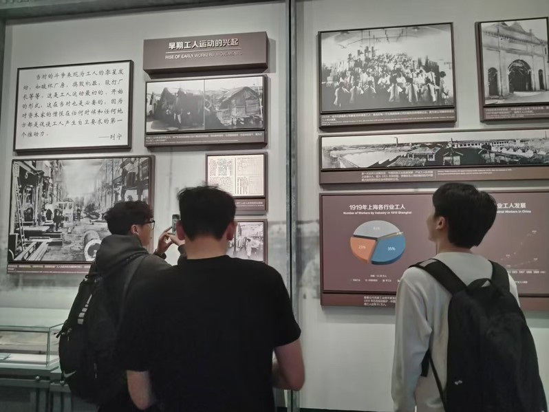 学生满怀敬仰,依次参观了一大会议旧址、陈列展览馆和宣誓大厅等区域。通过一张张珍贵的历史照片、一件件承载着厚重历史的革命遗物、一份份完好的文献资料,辅以真切的影像资料,学生了解党的一大召开的历史背景、会议的核心内容以及它对中国革命事业的深远影响,真切感受革命先辈为了崇高的信仰抛头颅洒热血的大无畏精神。