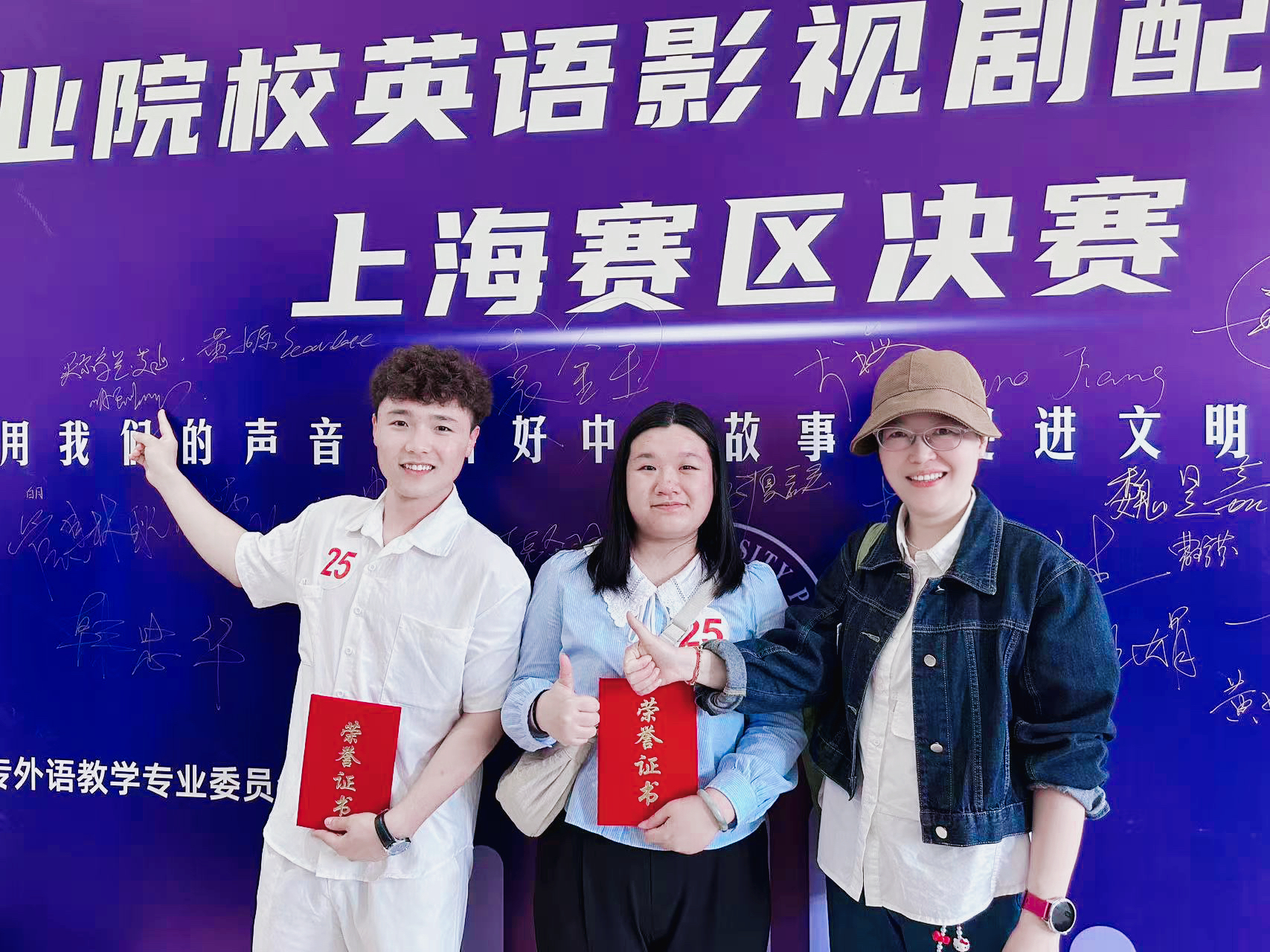 4月27日,由复旦新学术、复旦大学出版社等单位联合主办的第三届“复旦社杯”职业院校英语影视剧配音大赛圆满落幕。大赛由自选配音和规定配音双重组合,我校学子表现优异,由巨铭、邓玉华、李聪莉老师指导的两支学生团队分获上海赛区一等奖和三等奖。
