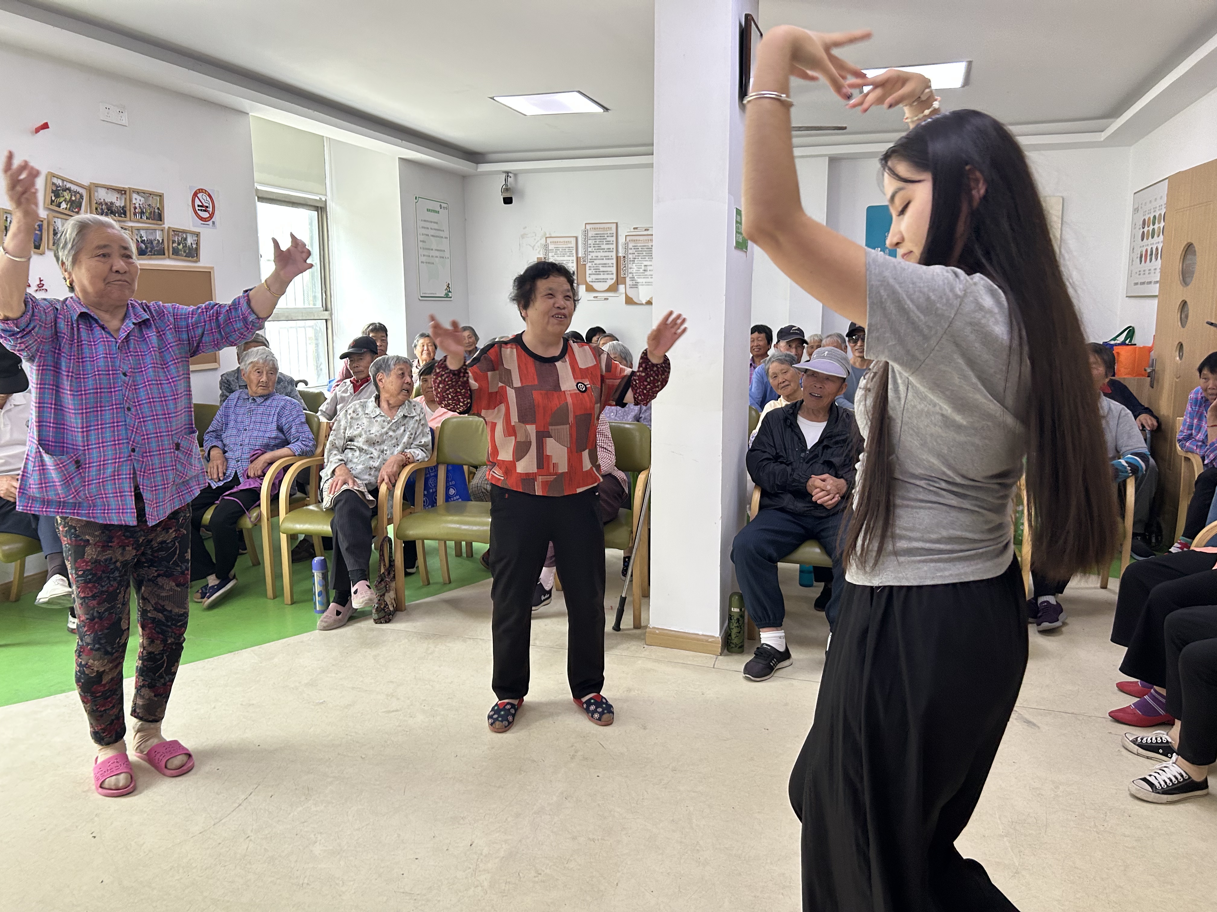 除了舞蹈,文化交流也是本次活动的一大亮点。学生们来自不同的民族,他们带来了各自民族的特色文化,与老人们进行了深入的交流。有的学生教老人们说少数民族语言,老人们跟着学生们一句一句地念,虽然发音不太标准,但大家都乐在其中;有的学生则向老人们学习上海话,感受上海方言的独特魅力。在你来我往的交流中,不同文化相互碰撞、相互交融,增进了彼此之间的了解和友谊。