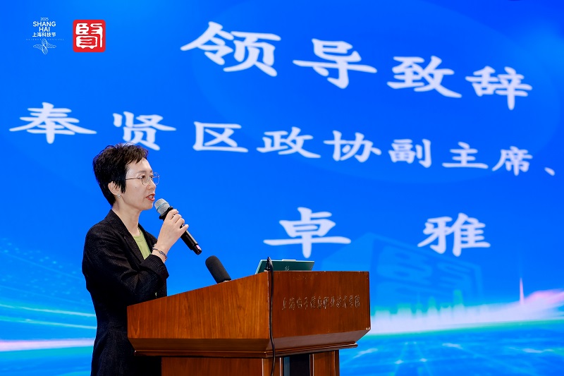 卓雅发表致辞,对拨冗出席的各方人士表示欢迎,对长期支持奉贤科技与科普事业发展的各界朋友表达感谢。她在致辞中表示,奉贤区近年来科技创新成果丰硕,高新技术企业数量持续增长,科技园区和孵化器蓬勃发展,特别是在生物医药、智能制造等新兴产业领域取得了突破性进展。