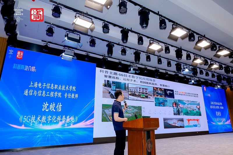 科技展示环节亮点频出,中国移动通信集团上海有限公司奉贤分公司市场部经理龚思捷展示了中国移动的最新电子科技成果,展现了通信技术在推动科技生活变革中的重要力量。国妇婴健康教育科医学博士雍娴婷介绍了国妇婴科普基地,为大众健康科普提供了新视角。我校中德工程学院教师刘长春、通信与信息工程学院教师沈皎佶分别介绍了《航空科普阵地》《5G技术数字化科普阵地》,凸显了教育机构在科普推广中的积极作用。