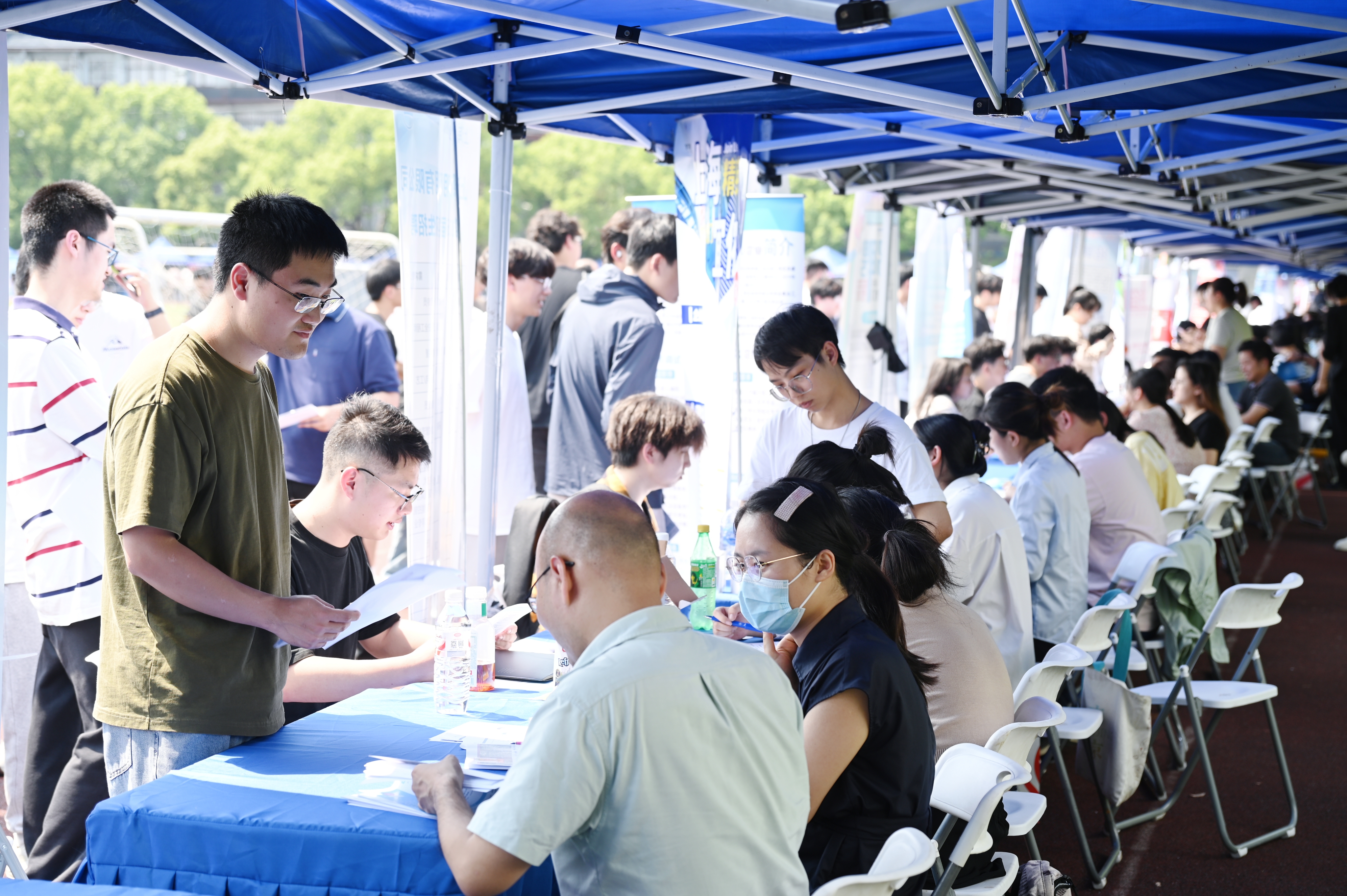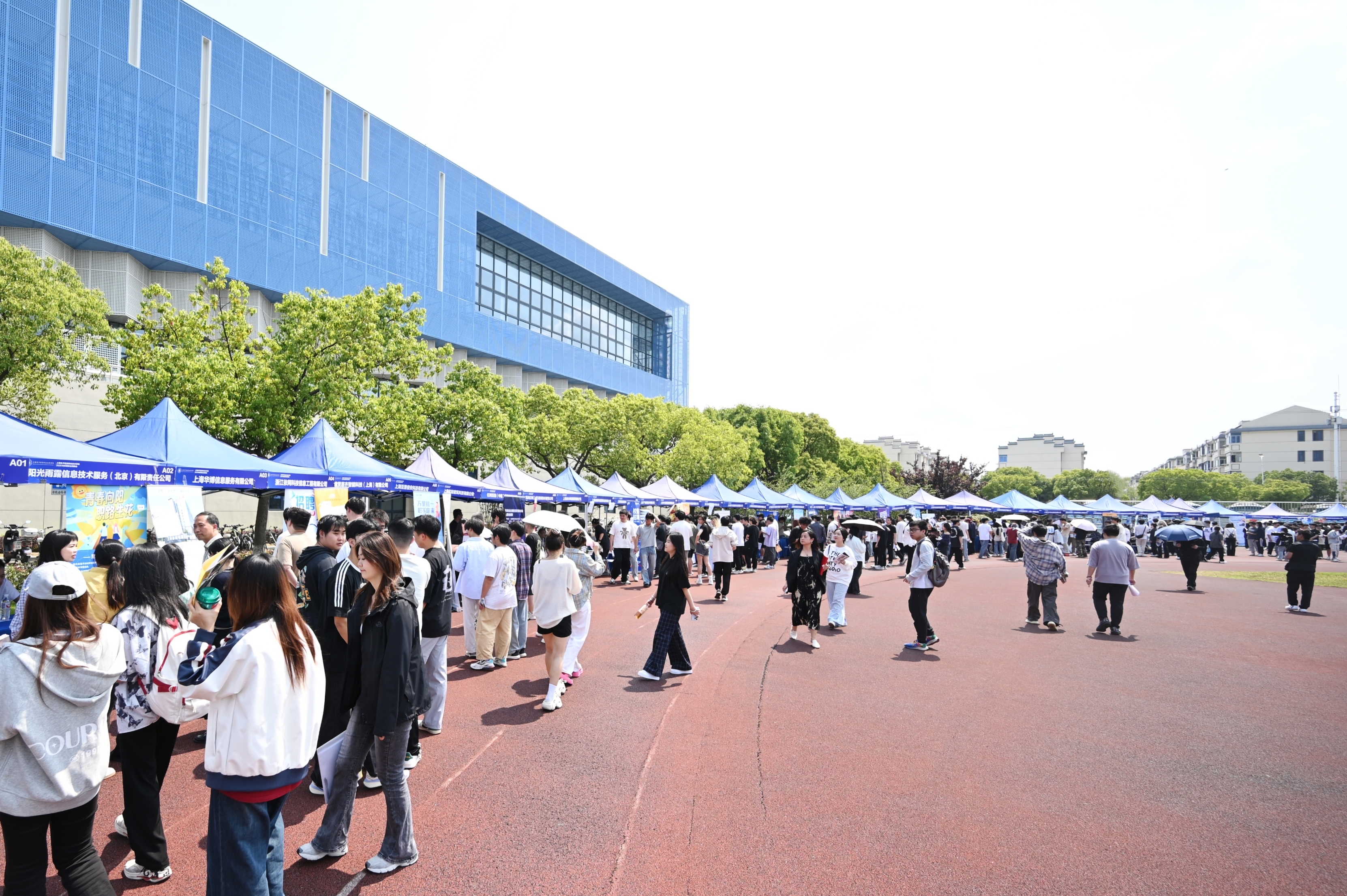 启动大会结束后,与会嘉宾在校领导的陪同下来到就业实习校园招聘会现场,与用人单位、辅导员、学生亲切交流,详细了解行业企业的用人需求情况、薪资待遇和学生的就业意愿、简历投递情况等。(摄影:杨璟楠 供稿单位:学工部)