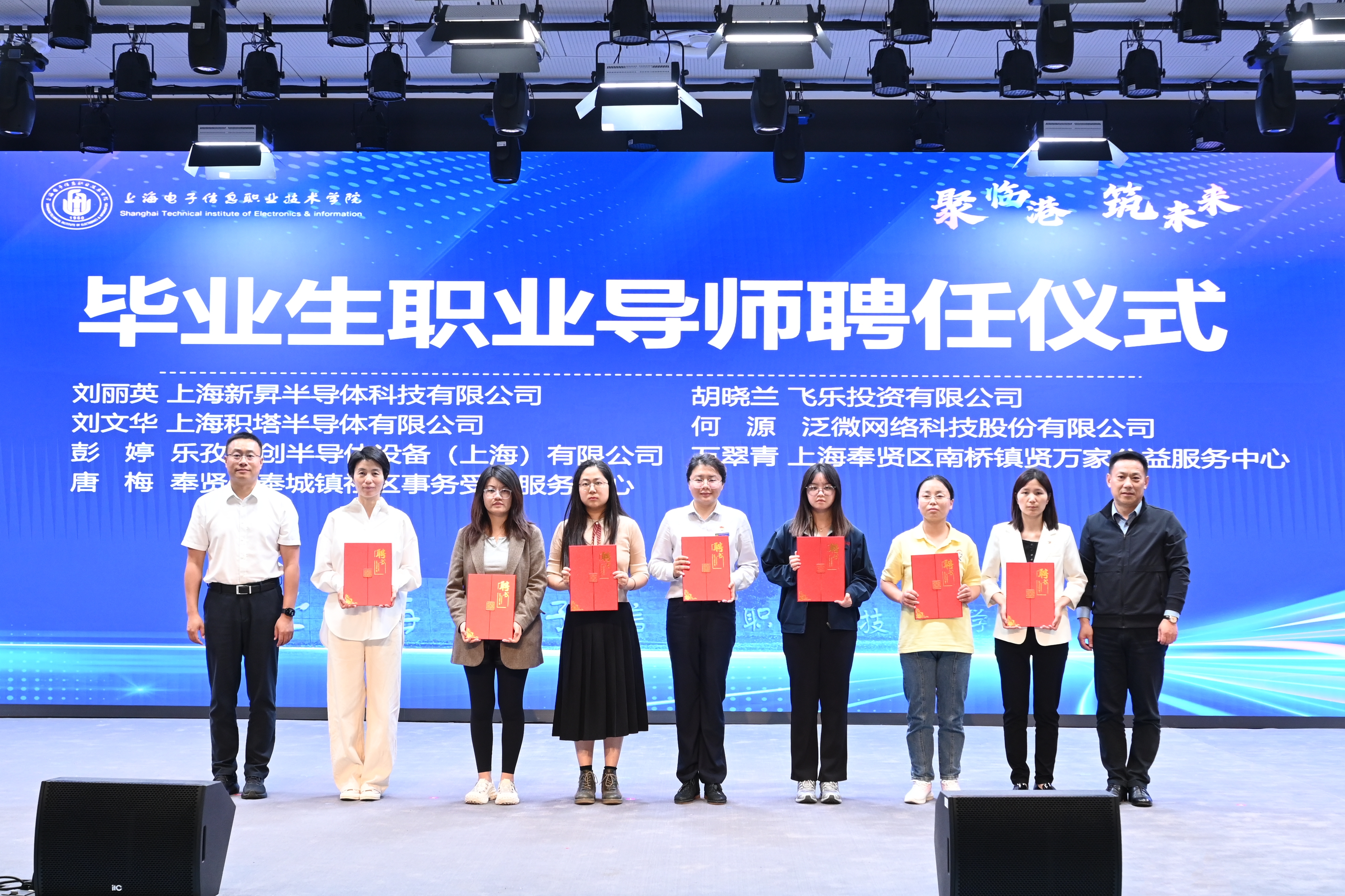 上海市学生事务中心主任赵猛,奉贤区奉城镇党委副书记、镇长汤琮璀为毕业生职业导师颁发聘任证书