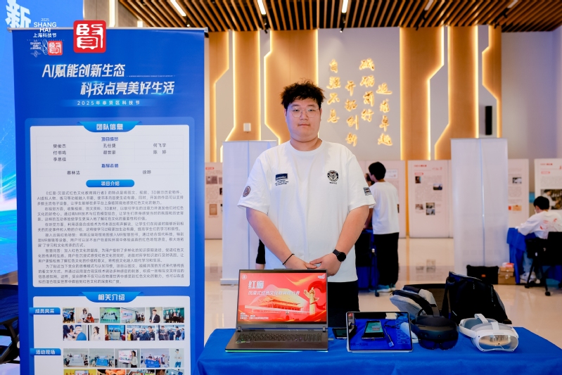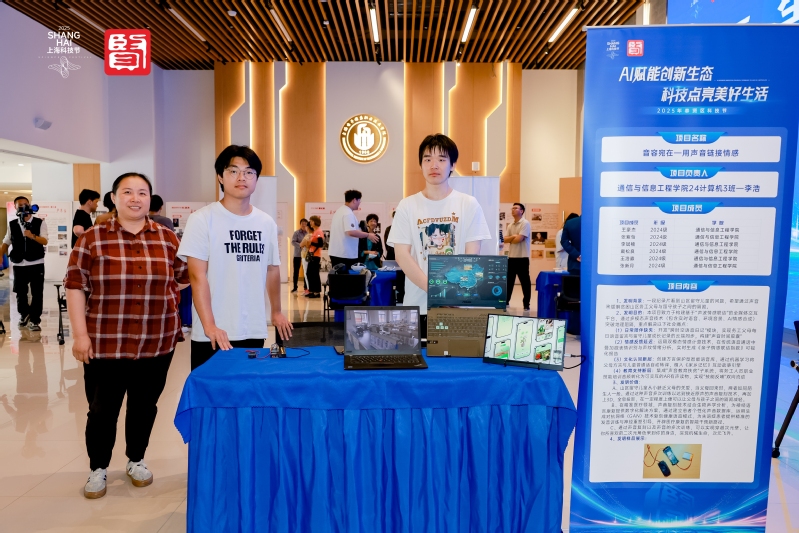 5月27日,以“AI赋能创新生态,科技点亮美好生活”为主题的2025年奉贤区科技节在我校新实训楼一楼开幕。在这场科技盛宴中,我校学生团队携7项成果惊艳亮相,成为活动焦点,吸引众多师生和嘉宾驻足观赏。