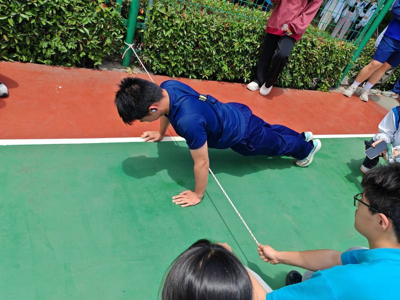 体能竞技项目同样精彩纷呈。跳长绳项目中,同学们配合默契,在翻飞的长绳间穿梭跳跃;俯卧撑项目里,大家咬紧牙关,挑战身体极限;200米物资疏散项目,选手们争分夺秒搬运物资,尽显应急能力;引体向上项目上,手臂肌肉紧绷,全力向上;3公里长跑项目,参赛者们步伐坚定,在跑道上奋力奔跑。全体参赛同学在这些项目中发扬顽强拼搏精神,凭借出色表现,展现出良好的体能储备。