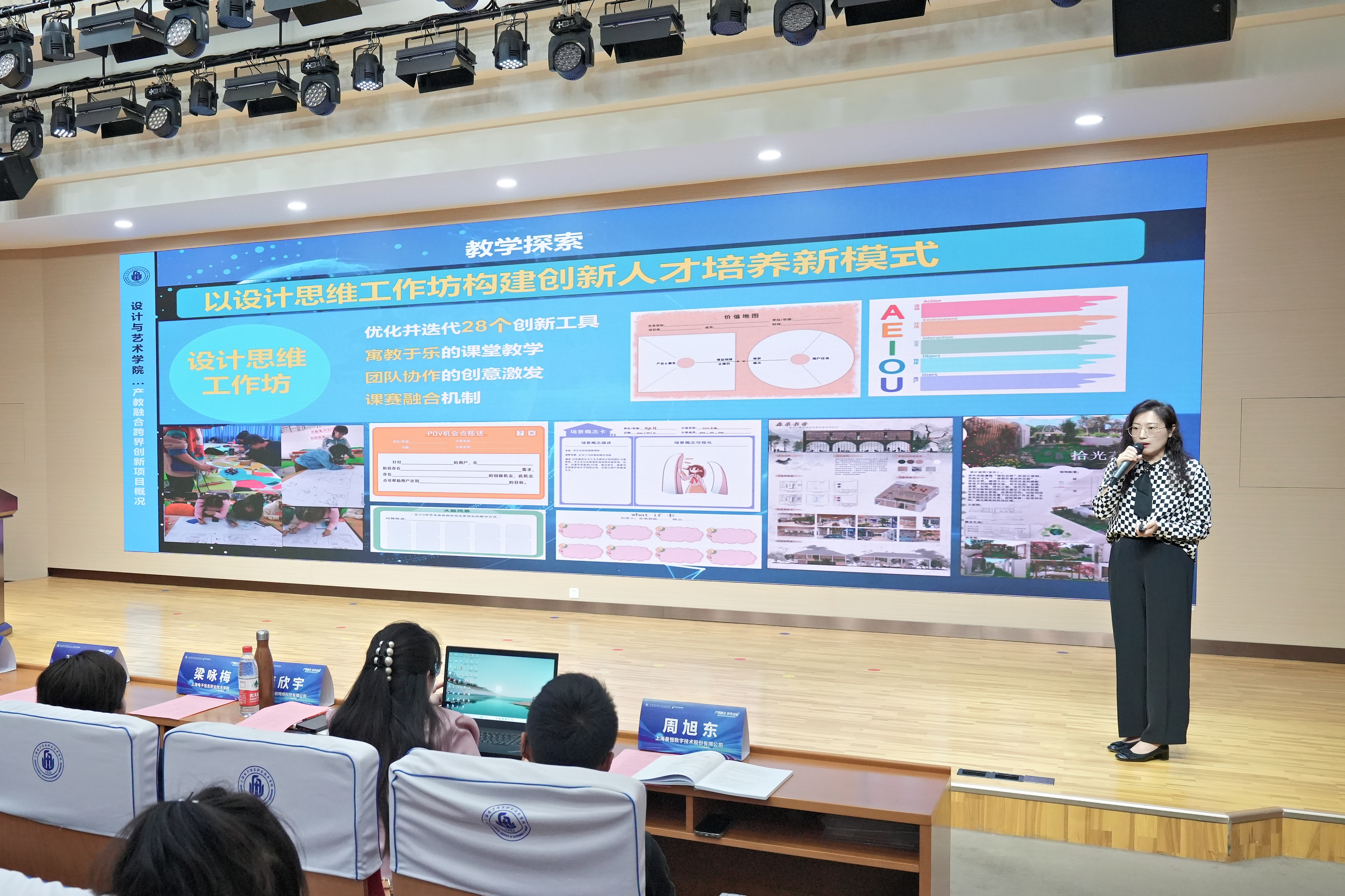 专题报告环节,李欣宇、孙侠、上海杉达学院艺术学院环境设计系主任樊灵燕、上海视觉艺术学院设计学院环境设计系主任邹一了、周旭东分别作《二心四力:重塑体验时代的创新底层逻辑》《AIGC赋能设计创新,重塑未来设计师》《能力为本,数智赋能:环境设计一流专业育人模式的探索与实践》《AI辅助设计思维培育实践研究》《基于沉浸式大空间技术的新型产教融合范式》专题报告。