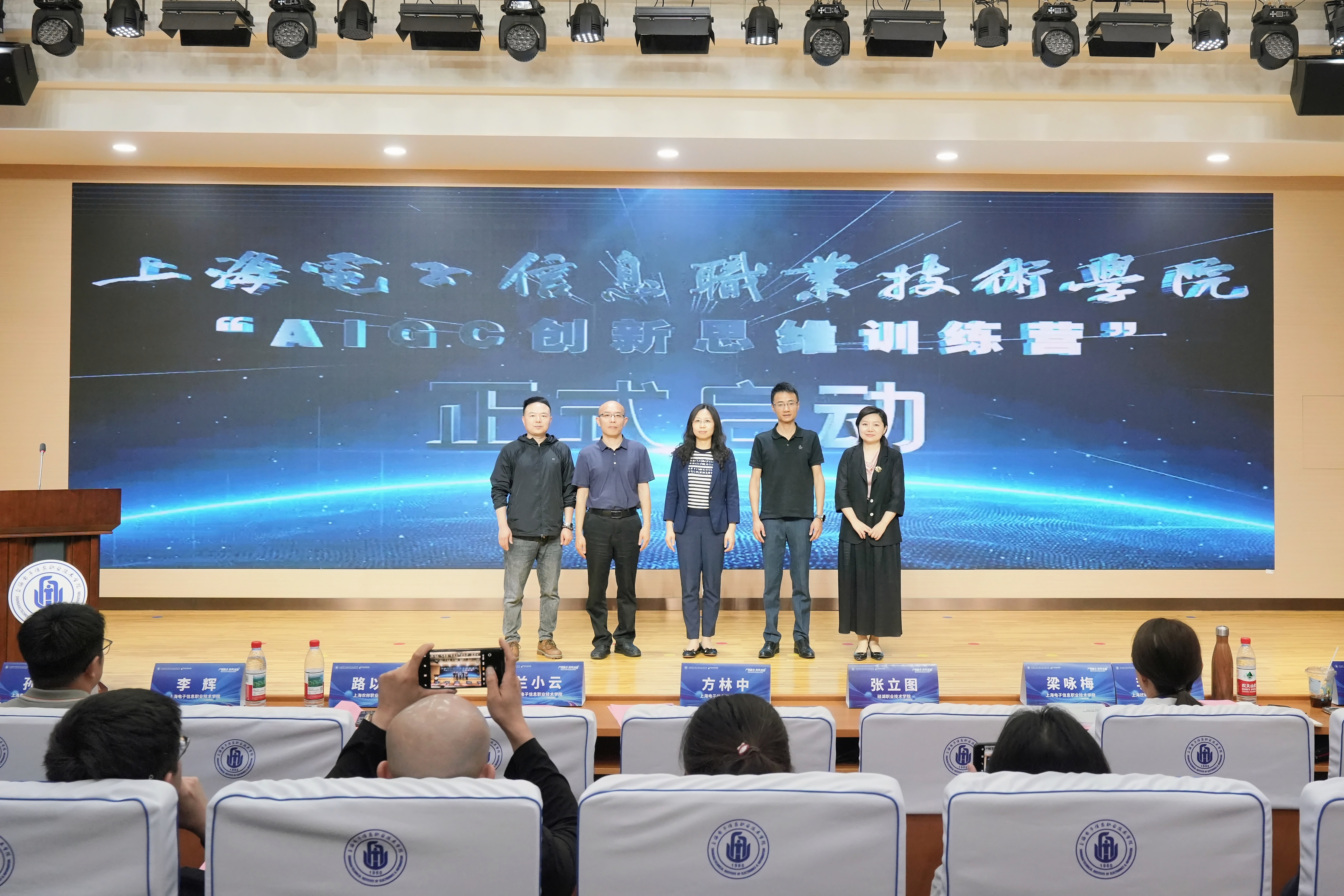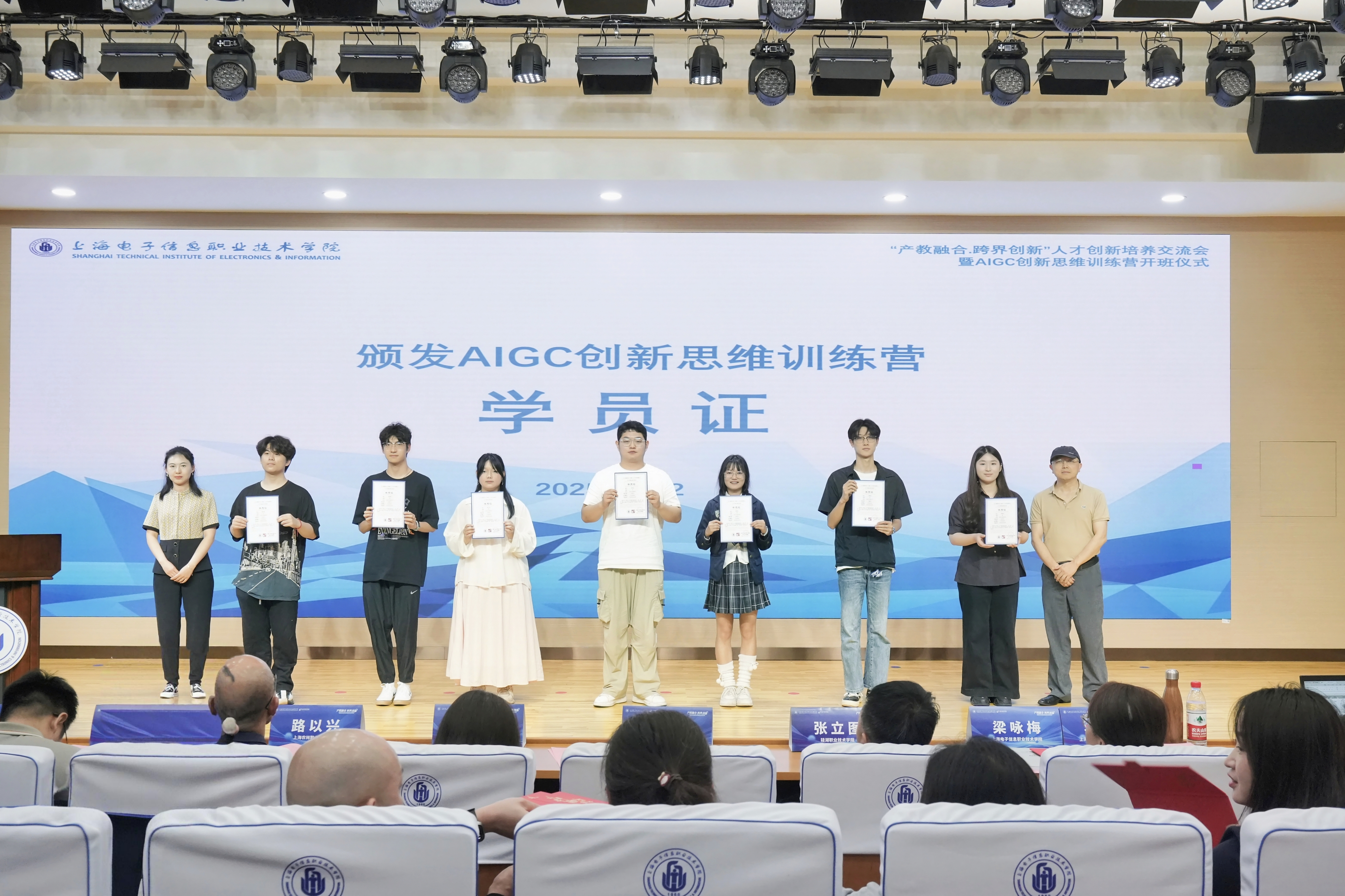 设计与艺术学院“AIGC创新思维训练营”负责人孙娜蒙详细介绍了本次会议报告以及创新思维训练营的基本建设情况。在各位嘉宾的共同见证下,张立图、李欣宇、周旭东、我校教务处处长兰小云、上海农林职业技术学院数字经济与创意系主任路以兴等校企代表按下启动按钮,标志着“AIGC创新思维训练营”正式开班。我校科研处副处长李辉、学生处副处长梁咏梅为企业导师颁发校外导师证书。设艺学院副院长周前程、赵莹为学员颁发学员证。