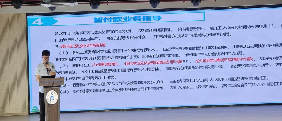 6月4日下午,财务处在新食堂四楼综合演艺厅举办了财务报销业务专题培训。此次培训以解读《财务报销指南2025版》为核心,吸引了各二级部门报销专员、项目负责人及相关业务人员积极参与。