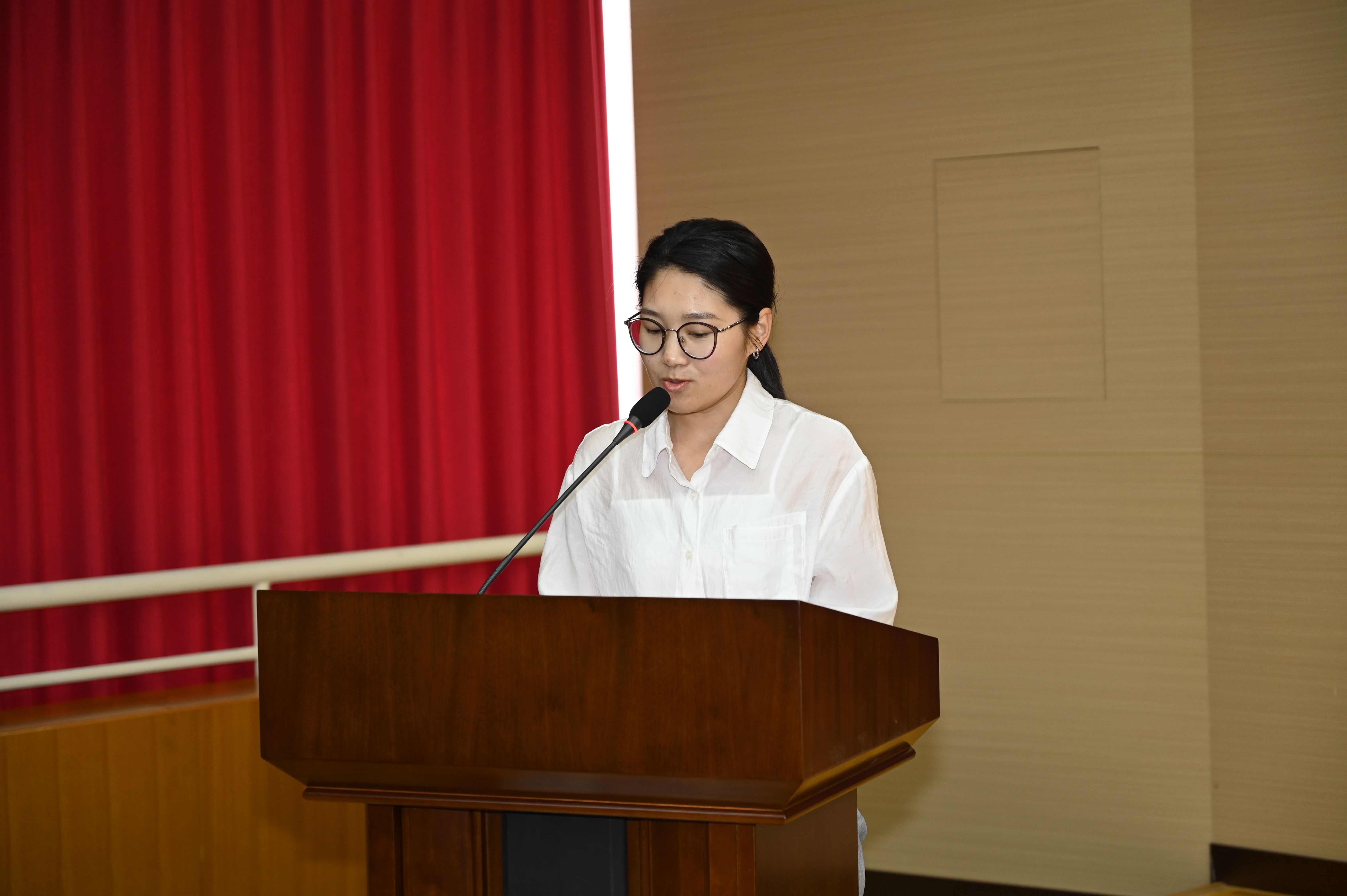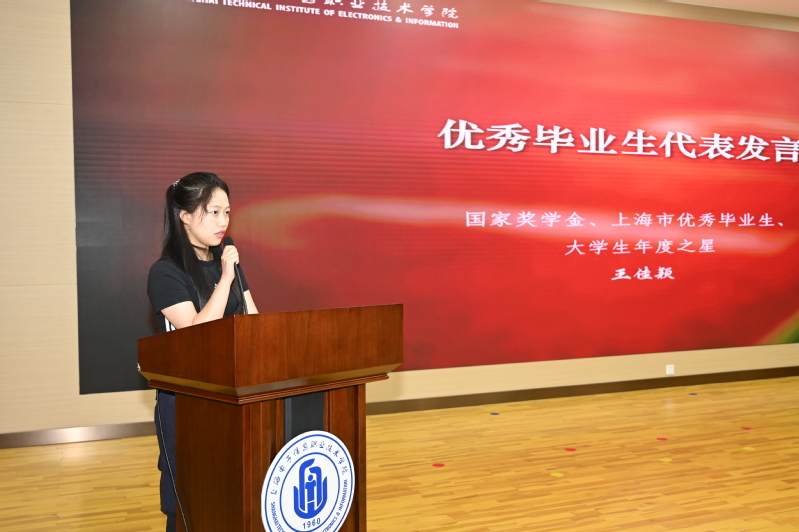 国家奖学金及上海市优秀毕业生获得者、学校大学生年度之星王佳颖作为毕业生代表发言。她以“感恩、蜕变、担当”为题,回顾了自己三年来的经历,从初入校园时的懵懂,到实验室里的钻研,再到赛场上的拼搏。她坚定表示,将在未来的征途中,以不懈奋斗的姿态,砥砺奋进,努力成为国家栋梁之才。专任教师代表方爽和毕业班辅导员聂博作为教师代表送上寄语,嘱托每位同学坚守原则、终身学习、脚踏实地,在团队协作中敢为人先,让技术与温暖同行。同时以“母校永远是温暖港湾”的深情守望,祝福同学们如正弦波般向阳生长,在人生赛道上用专业底气与赤子之心奔赴星辰大海。