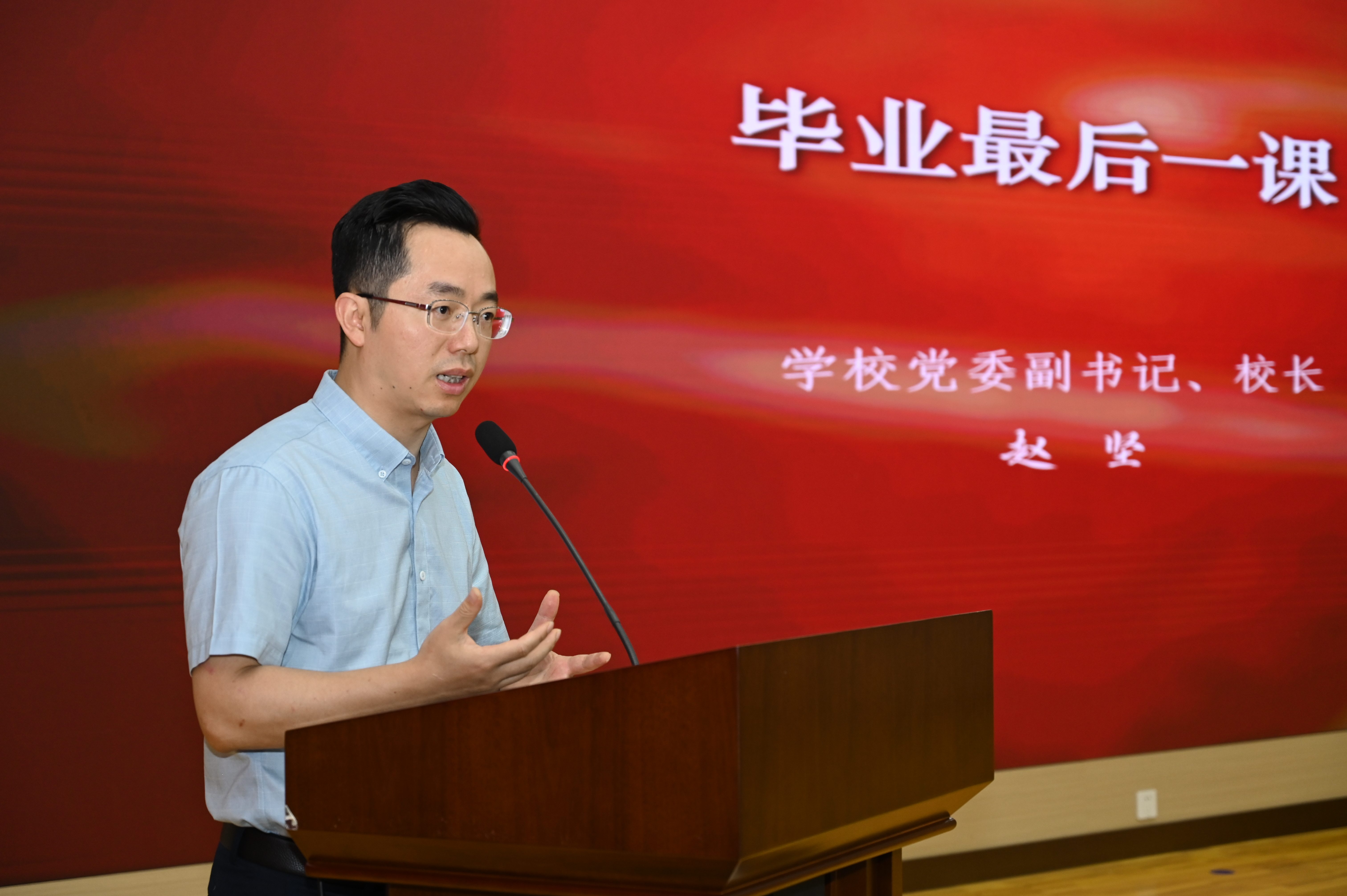赵坚为毕业生带来“毕业最后一课”。他从国际国内形势与个人发展、职业教育的紧密联系出发,向毕业生提出“怀抱三心”的殷切期望:一是永葆“家国情怀之心”,将个人职业选择融入国家发展战略,在服务社会中锚定人生坐标;二是坚守“好奇的求知之心”,以开放姿态拥抱人工智能浪潮,在持续学习中突破创新壁垒,让终身学习成为职业发展的底色;三是秉持“面对困难和挑战的平常之心”,学会在团队协作中凝聚力量,又要保持独立思考的清醒,以昂扬向上的心态跨越人生山海。同时,他祝福同学们在未来的征程中,以“三心”为楫,在时代浪潮中破浪前行,书写属于自己的璀璨篇章。