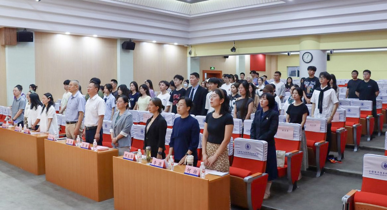 毕业典礼于下午1点准时开始,在雄壮的国歌声中,全体师生肃立,共同奏唱国歌,为典礼拉开了序幕。