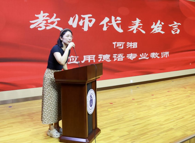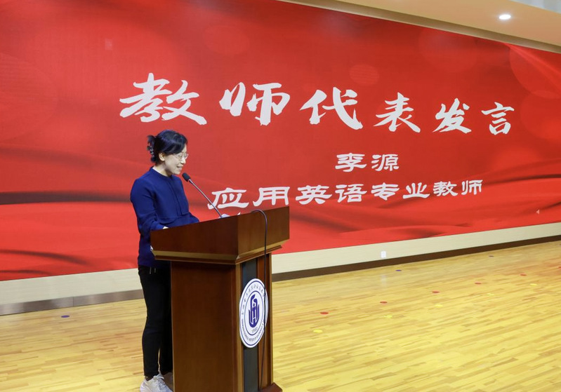 应用德语专业专任教师何湘老师与应用英语专业专任教师李源老师分别发言,他们凭借着深厚的专业积淀与育人温情,为毕业生送上诚挚的祝福,期望同学们以所学坚守初心、拓宽人生,从容奔赴新征程。