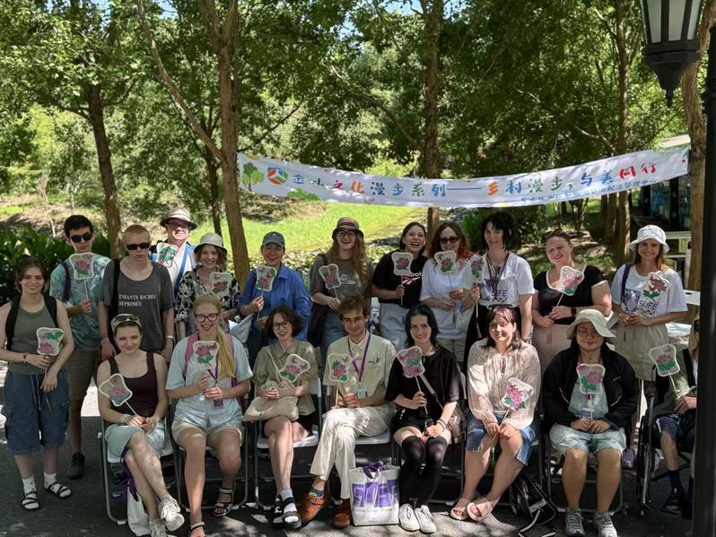 在花开海上生态园,团队迎来了一场特别的非遗外交”——热情接待爱沙尼亚留学生,共同体验中国传统缠丝扇制作。留学生精心挑选材料,细致粘贴珍珠、勾勒纹样,在队员们的耐心指导下,一步步完成精美的作品。亲身体验中国工艺的精巧与细腻,留学生表现出浓厚兴趣,纷纷表示这次动手之旅让他们对中国文化有了更深的认识与由衷的喜爱,希望成为传播中华文化的友好使者。