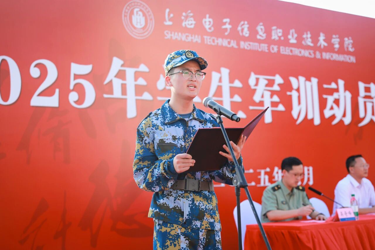 电子技术与工程学院胡锦华和中德工程学院张睿代表2025年全体参训学生发言,他们承诺和全体参训学生将在军训中严格遵守纪律、克服困难挑战、学习军人作风、磨砺提升自我,以饱满的热情和坚定的信念全力完成此次军训任务。