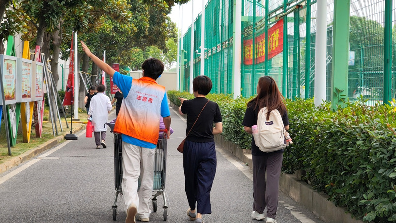 清晨,校园里已是一片忙碌而温暖的景象。学生志愿者们与班主任早早到岗,以饱满的热情迎接新同学。志愿者们统一着装穿梭其间,指路、搬行李、答疑,动作利落,笑容真挚,让初来乍到的学子与家长瞬间卸下忐忑。走进宿舍,新生与家长并肩整理内务,铺床、摆物、挂帘,默契配合,把一方小小空间迅速布置成“家”的模样,温馨在指尖悄悄生长。新同学们来到食堂领取一卡通和校服,标志着新生们正式开启了崭新学习生活。