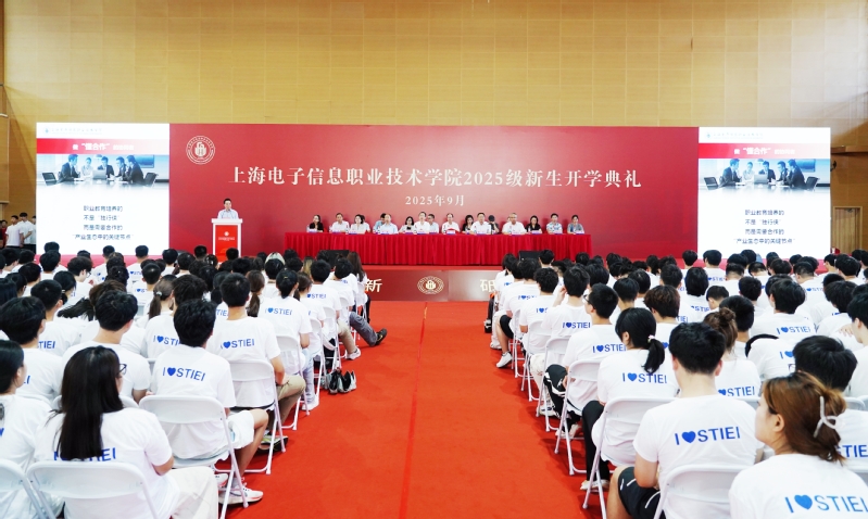 金风拂栏处,秋韵启新篇。9月22日下午,上海电子信息职业技术学院2025级新生开学典礼在奉贤校区综合体育馆举行。校领导傅建勤、赵坚、丁磊、张涛、窦争妍、徐德明出席开学典礼。各二级学院党政负责人、相关职能部门负责人、学生工作负责人、学管办主任、教师代表、辅导员及2025级全体新生参加典礼。典礼由学校党委副书记、副院长张涛主持。