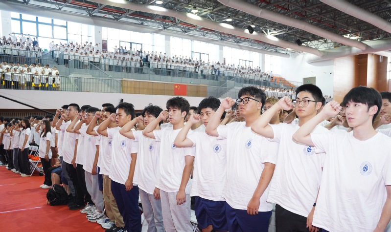 退役大学生士兵、通信与信息工程学院郑俊峰带领全体新生郑重宣誓,铿锵有力的青春誓言久久回荡,凝聚共同的信念,坚定前行的决心。在庄严宣誓声中,开学典礼圆满落下帷幕。