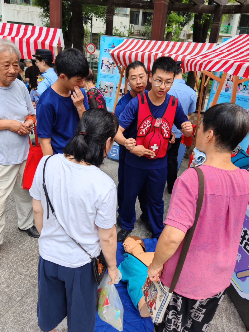在活动现场,我院师生展示了智能搜救机器狗生命体征识别、声音定位等功能,吸引了众多居民驻足观看与互动体验。同时,我院师生利用心肺复苏模拟假人和海姆立克急救模拟背心,为居民演示了心肺复苏和海姆立克急救法要领,并协助居民完成实操练习。居民们纷纷表示,通过直观的演示,对救援科技有了更深入的了解,也增强了对社区安全的信心。