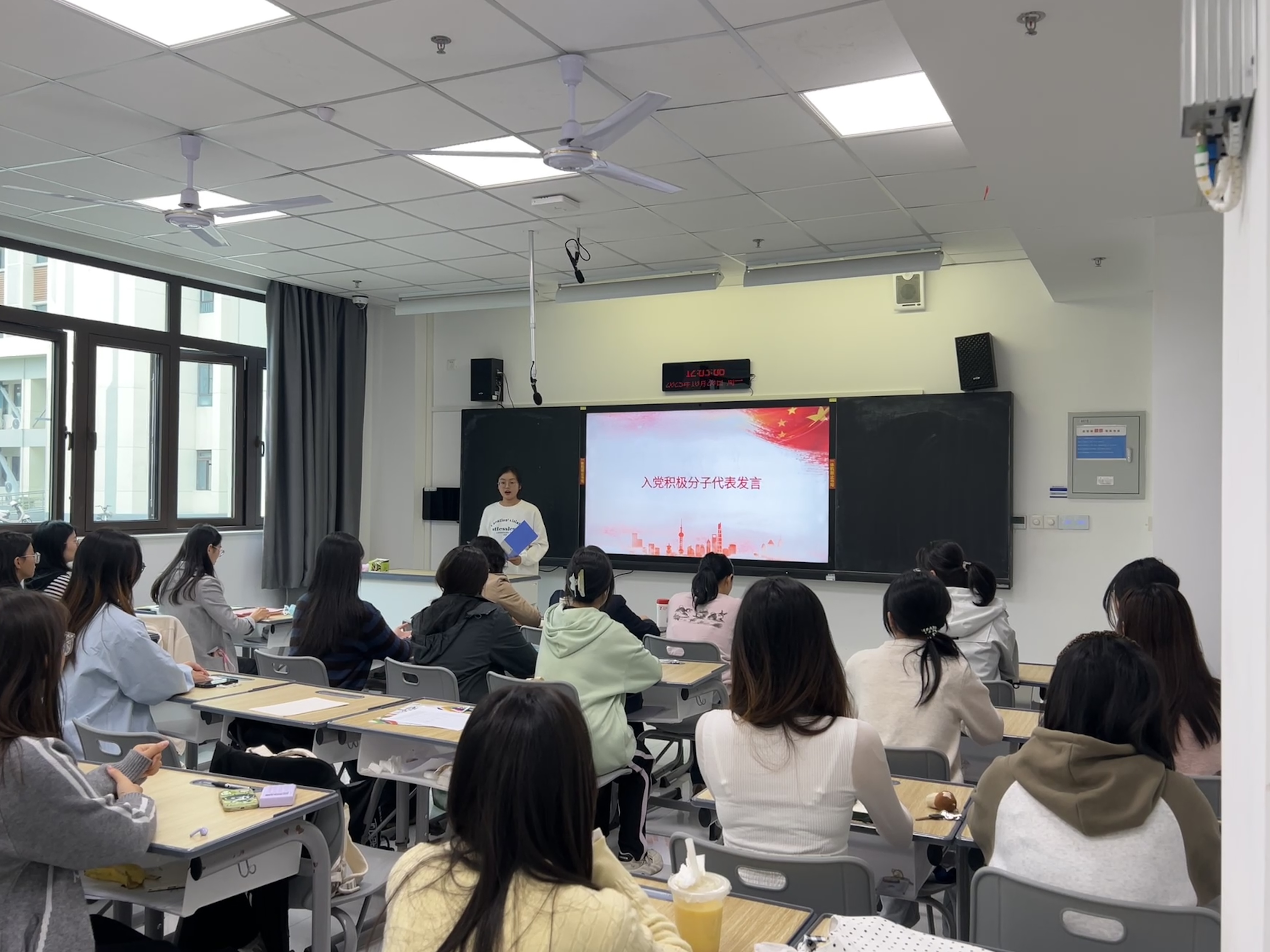 会议在雄壮的国歌声中拉开帷幕,殷菲首先介绍了本次培训班的目的和培训要求。24人资1班吴心语同学代表入党积极分子学员发言,她表示本次培训班既是理论学习的机会,更是思想淬炼、精神洗礼的旅程。她将和同学们一起认真学习,强化理论武装,传承红色基因,践行青春担当,争取早日入党。