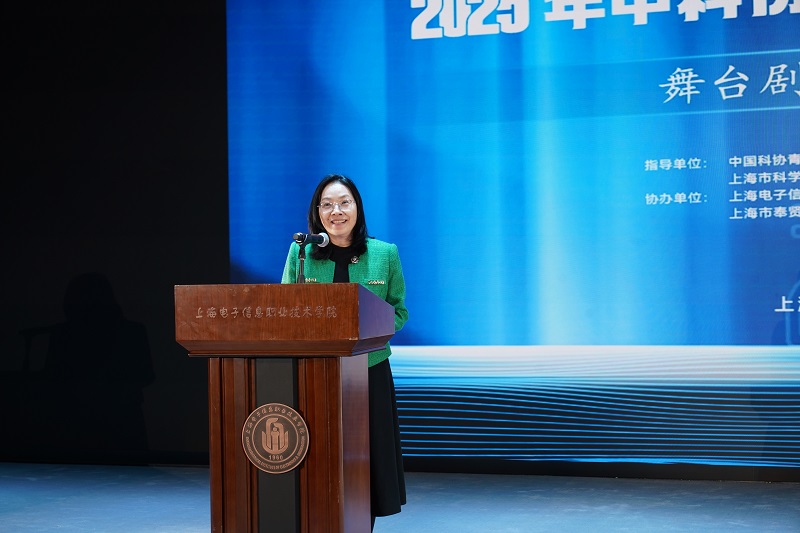 王向红在致辞中详细介绍了舞台剧创排背景与项目价值。她指出,《“波浪”的御者——章梓雄院士》是学校2025年度获批的“科学家故事舞台剧推广行动”核心成果,是中国科协“科学大师宣传工程”重要子项目。2025年,我校成为上海市唯一、全国十七所之一获批该项目的高职院校。她强调,舞台剧从无到有的创排过程,是学校科研与文化深度融合的生动实践,既展现了校园文化建设的阶段性成效,更以艺术形式传承了科学精神、厚植了校友情怀,为高职教育创新育人模式提供了鲜活样本。