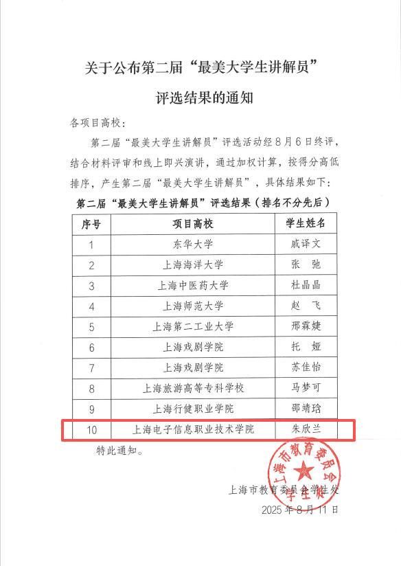 近日,上海市教育系统多项学生资助评选结果揭晓,我校在第二届“最美大学生讲解员”评选、第二届资助工作者能力提升活动和第四届“谁的青春不奋斗”学生故事讲演活动中获佳绩。