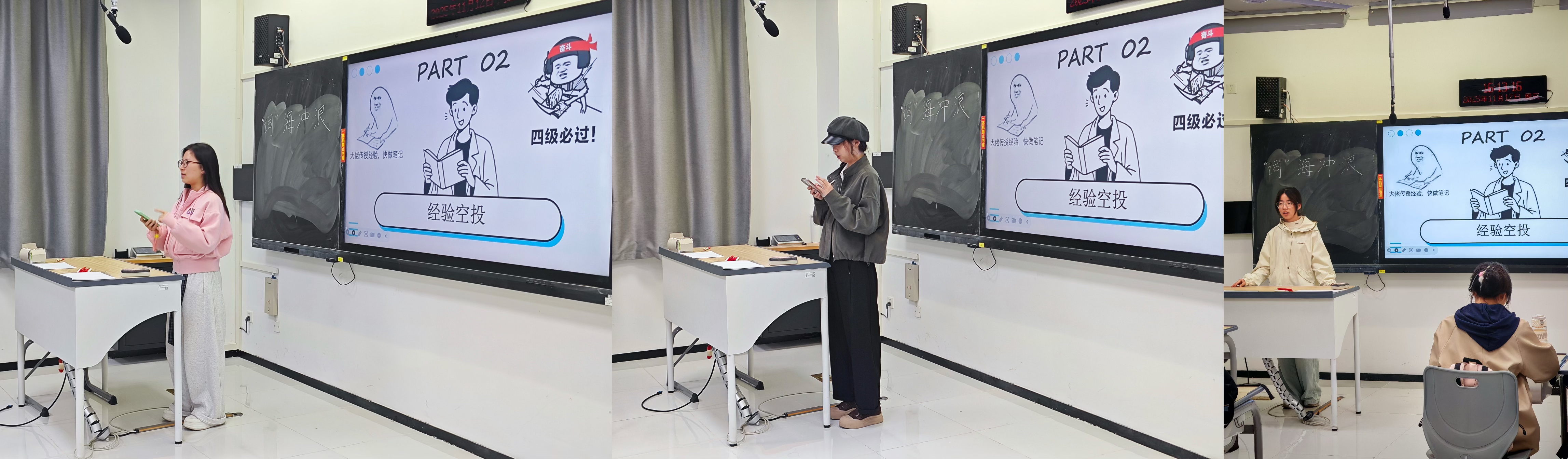 11月12日,经济与管理学院学生会学术部在启智楼102成功举办“词”海冲浪,“听”风辨意——大学英语四级答疑趣味竞赛活动。竞赛特邀三位已通过考试的学长学姐担任分享嘉宾,将他们宝贵的备考经验与学习“心法”倾囊相授,这份无私的“传帮带”之爱,成为活动现场最动人的风景。