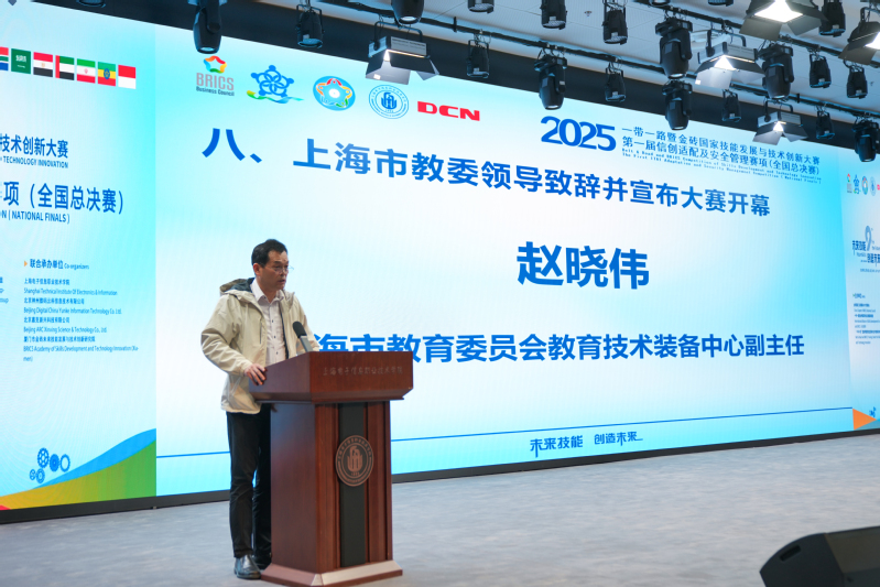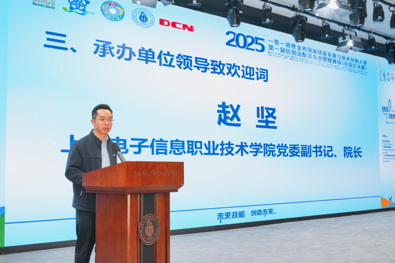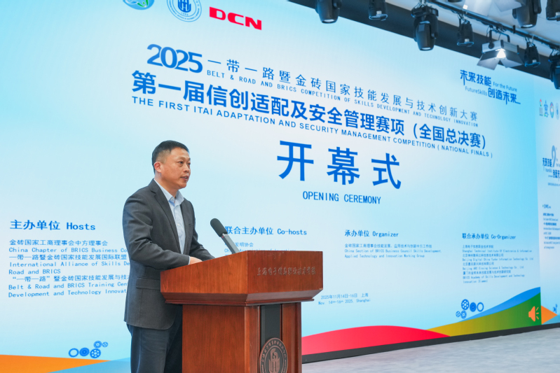 14日下午,开幕式在学校奉贤校区实训大楼报告厅举行。上海市教育委员会教育技术装备中心副主任赵晓伟、我校党委副书记、院长赵坚、金砖国家技能发展与技术创新大赛组委会执委会国内竞赛办公室三处处长程帅出席仪式并致辞。赛事主办方代表、行业专家、各参赛院校领队及选手、我校领导与师生代表共同见证这一重要时刻。开幕式由我校副院长方林中主持。