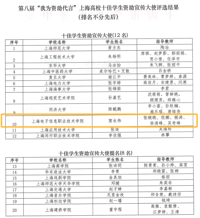 近日,由上海市教育委员会指导、上海市学生事务中心主办的第八届“我为资助代言”上海高校十佳学生资助宣传大使评选活动,在上海中医药大学圆满落幕。本次活动汇聚全市46所高等院校的杰出学子同台竞技,现场比拼激烈非凡。我校机械学院窦永伟同学以《沪滇协奏山海曲,东西协作家国赋》为主题的宣讲,赢得评委与观众的赞誉,获“上海高校十佳学生资助宣传大使”荣誉称号。这也是我校学子连续两年获得该荣誉,彰显了我校在学生培养与资助宣传工作中的扎实成效,也为我校沪滇协作相关工作再添亮眼成绩。