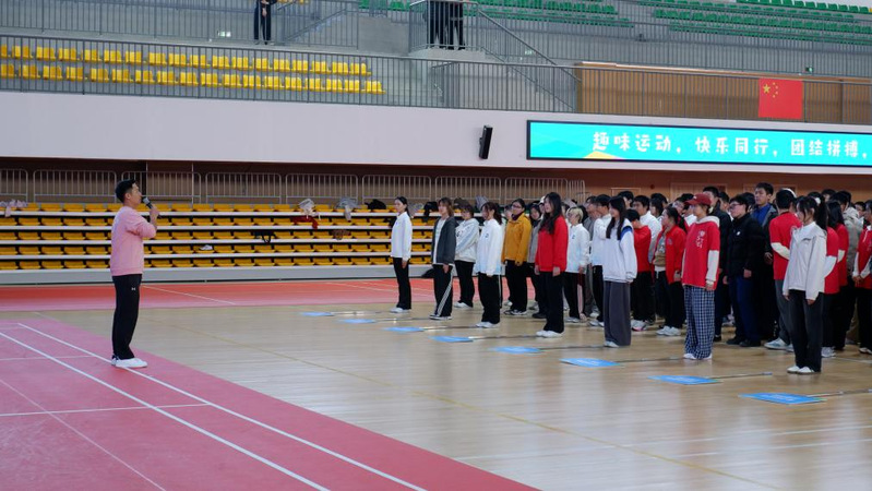 中午时分,各代表队身着统一队服依次签到入场,色彩纷呈的服装将体育馆装点得生机勃勃。公共基础学院院长姚光文致欢迎辞,他鼓励同学们暂别学业压力,以轻松心态投入趣味赛事,享受运动本身的快乐。在这里,赛事不设严苛的胜负标准,每一次参与、每一次尝试,都是赛场上最动人的风景。