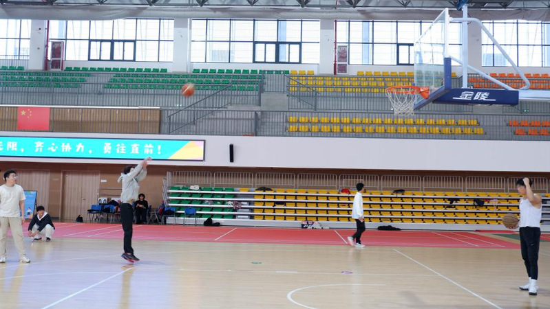 篮球定点投篮区,精准的投射与热烈的欢呼声此起彼伏,每一次命中都赢得队友们由衷的喝彩。