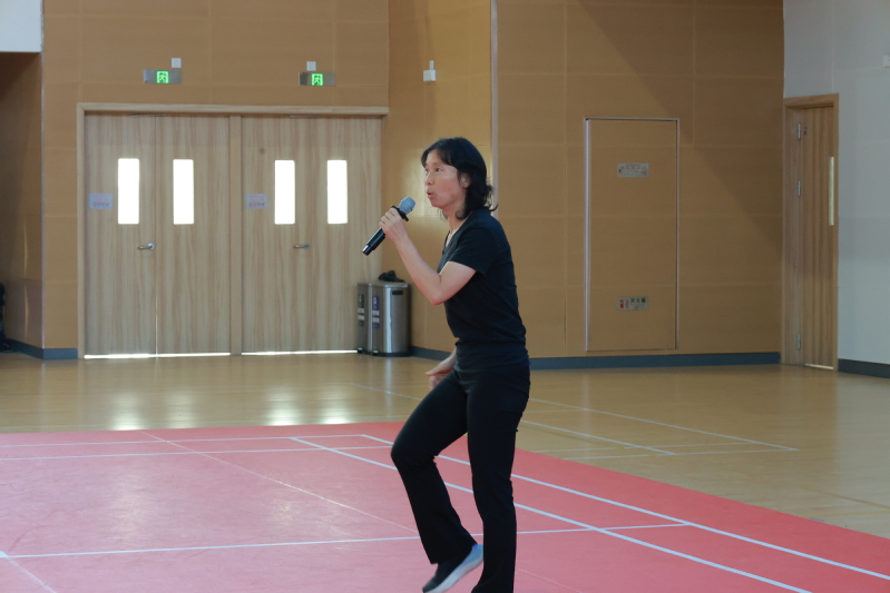 比赛开始前,体育教研室付海峡老师带领全体参赛同学开展健美操步伐热身练习,现场欢声笑语不断、氛围热烈,赛场瞬间洋溢着轻松愉悦气息。