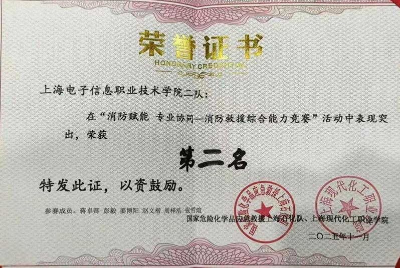 11月20日,我校消防救援专业学生在消防技能比武活动中获得二等奖、三等奖!本次活动由国家危险化学品应急救援上海石化队、上海现代化工职业学院、上海电子信息职业技术学院、上海市市北职业高级中学联合举办,我校学生凭借过硬技能水平和奋勇争先的精神风貌斩获佳绩。
