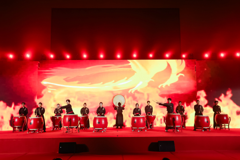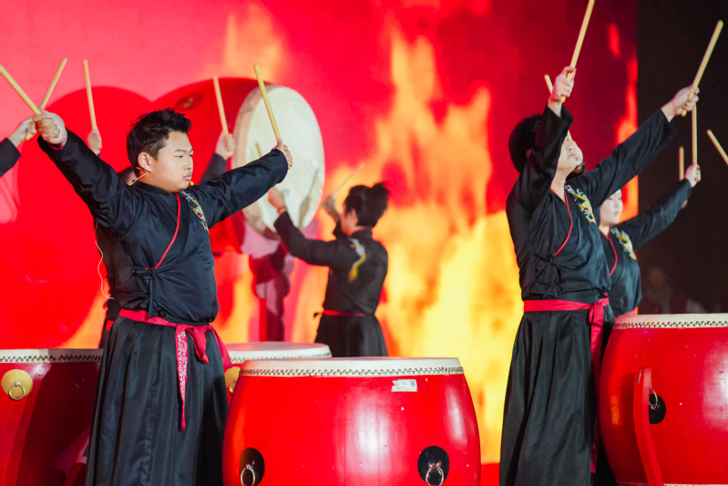 在观看完本届艺术节各分项活动回顾视频后,演出在气势恢宏的打击乐《鼓诗》中拉开序幕。