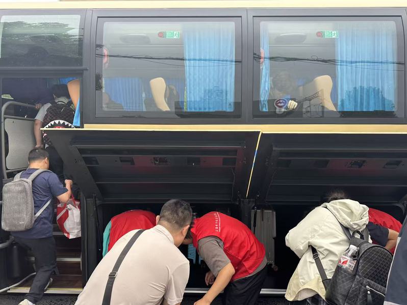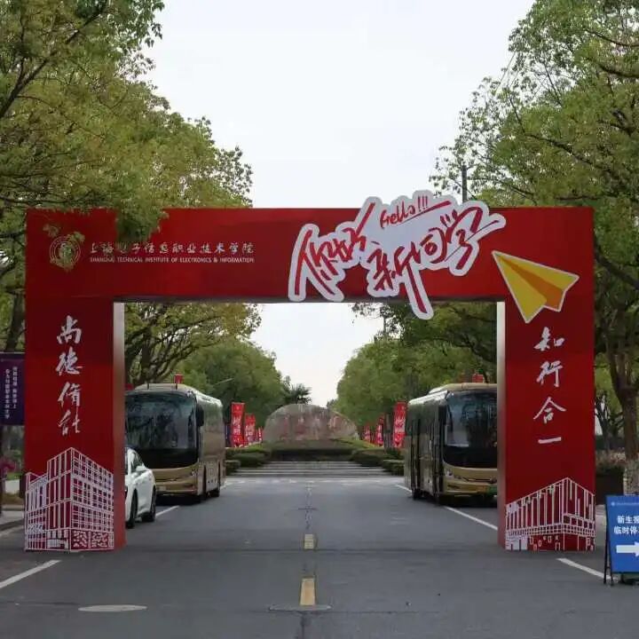从外环路地铁站到校园,大巴车上坐满了携带行李的新生。红马甲志愿者,帮你把行李稳稳放在角落。窗外的雨慢慢小了,你们望着沿途掠过的校园建筑,有的悄悄拿出手机拍下实训楼的样子,一路的奔波,都化作了对未来的好奇。