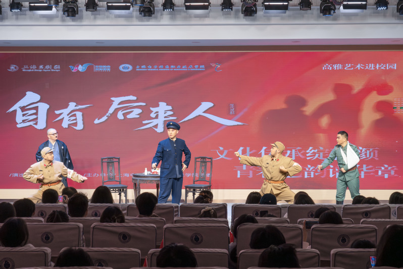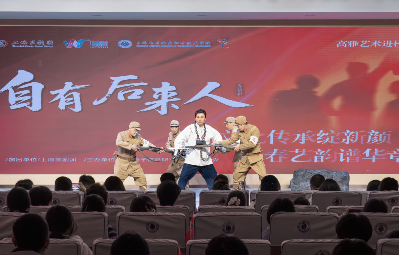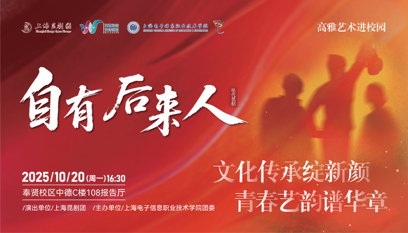 为深入学习宣传贯彻党的二十大和二十届三中全会精神,进一步落实习近平总书记关于教育的重要论述,始终以立德树人为根本任务,紧紧围绕学校改革事业发展的中心任务和党代会提出的“六大体系建设”,充分发挥校园文化艺术在提高学生审美和人文素养方面的独特作用,引导全校师生坚定理想、奋发图强、创新实践,2025年10月20日,学院“文化传承绽新颜,青春艺韵谱华章”——第十届校园文化艺术节暨高雅艺术进校园专场演出在奉贤校区中德C楼108报告厅隆重举行。本次活动特邀上海昆剧团带来现代昆剧《自有后来人》,为全校师生呈现了一场兼具传统韵味与时代活力的艺术盛宴。