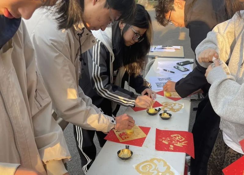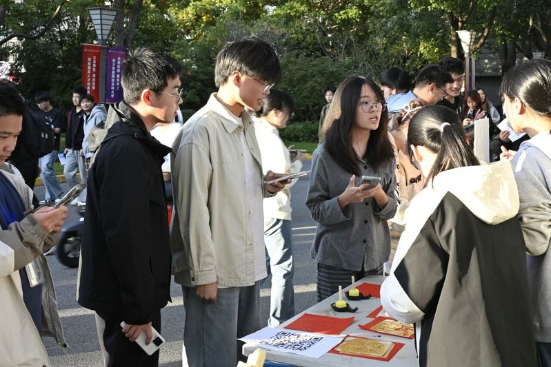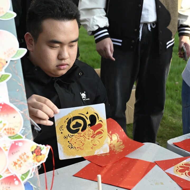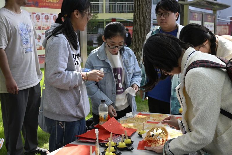 在“非遗拓印”环节,同学们通过扫描二维码完成问卷后领取材料包,在工作人员的指导下亲手完成拓印作品,体验传统技艺的独特韵味。完成的作品既可留作纪念,也可赠与长辈,体现了孝亲敬老的文化内涵。