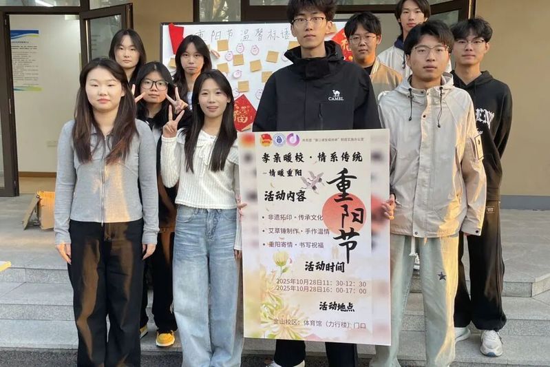 重阳节,是中华民族“以孝为荣”的岁时坐标,也是“人间重晚晴”的价值号角。为弘扬中华民族尊老、敬老、爱老、助老的传统美德,深化青年学子对中华优秀传统文化的理解与认同。10月28日,校团委二课在奉贤、金山校区共同举办“孝亲暖校・情系传统”重阳节活动,以菊花为笺、以茱萸为笔、以青春为声,邀请同学在丰富多彩的活动中触摸传统文化的脉搏,在敬老爱老的实践中体悟“老吾老以及人之老”的东方情怀。