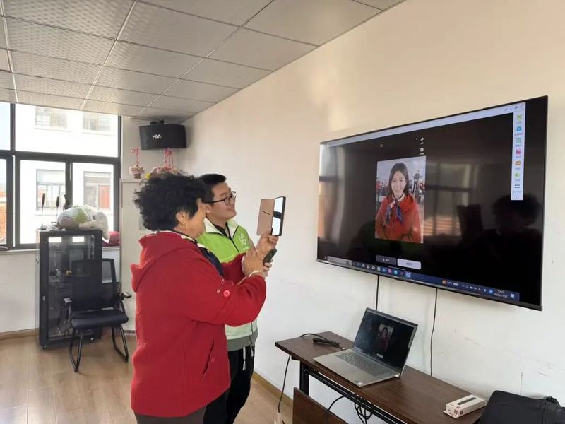 本次活动最动人的篇章,在于用AI技术为老人们的情感记忆赋能。在“AI时光机”环节,志愿者们借助人像修复技术,将老人们提供的照片瞬间“年轻化”。看到镜中白发转为青丝,皱纹悄然抚平,惊叹与欢笑在现场回荡。