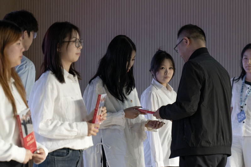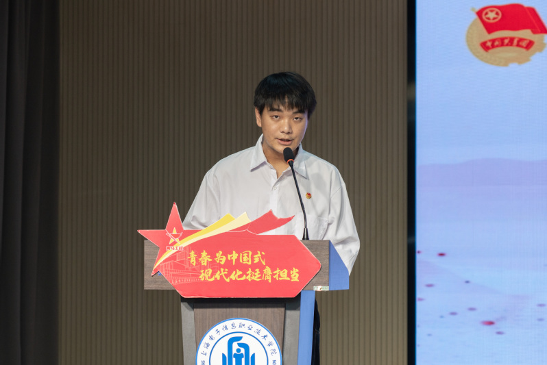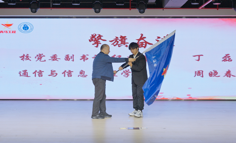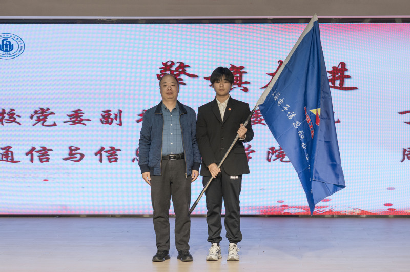 最后,学院党委副书记、纪委书记丁磊为学员代表授旗并寄语。他对新学员提出殷切期望:希望全体学员以此次培训为契机,筑牢信仰之基、提升理论素养、锤炼过硬本领,努力成长为有理想、敢担当、能吃苦、肯奋斗的新时代青年马克思主义者,为学院“新双高”和职业本科建设贡献青春力量。寄语完毕,全体人员起立奏唱团歌,嘹亮的歌声为开班仪式画上圆满句号。