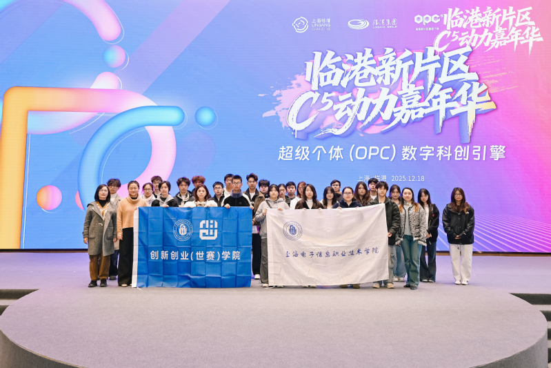 为激活学生数字科创思维,提升产业认知水平,精准对接数字科技前沿应用,12月18日,创新创业(世赛)学院院长带队,组织创新创业实验班学员及有志创业学生代表,赴临港新片区参与C⁵动力嘉年华暨超级个体(OPC)数字科创引擎活动。