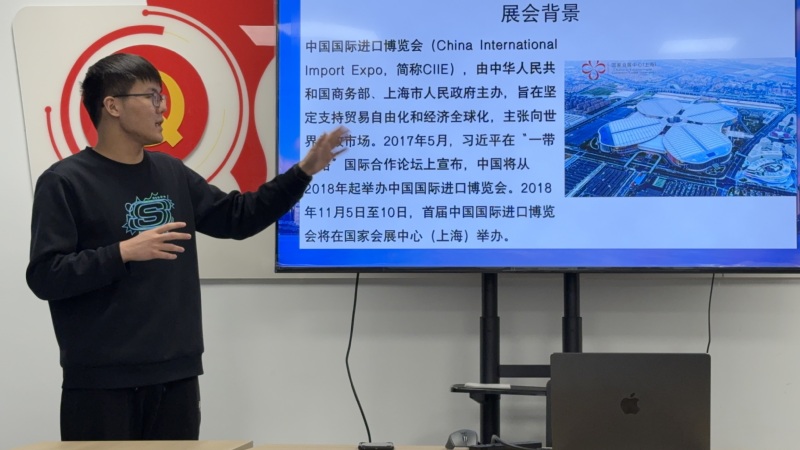 刚刚服务完第八届进博会的4名“小叶子”把“四叶草”搬回了校园社区。他们把证件、徽章、工作手册等布置成微型展,用视频日记还原岗位故事:凌晨四点的班车站、暴走3万步的“暴走团”、用英语、手语加表情包为视障观众讲解的“00后”等给社区学生呈现了一个鲜活的志愿者成长之路。