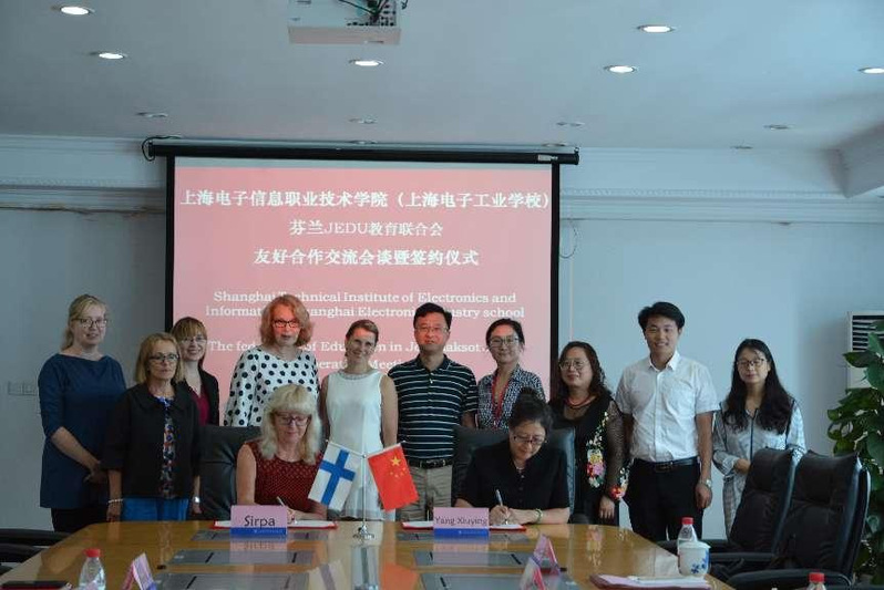 2011年,在上海市教育委员会牵头下,学校中专部(上海电子工业学校)与芬兰埃斯波市OMNIA职教联盟签署关于开展友好合作交流的意向书,在教学人员互访交流、学生互访交流和教学资料交流等方面开展合作,2019年,学校与合并重组后的芬兰FINN VET IN CHINA职教联盟续签合作协议。截至2019年底,共计70名教师、11名学生赴芬兰交流,74名芬兰教师和32名芬兰学校来校交流、学习。