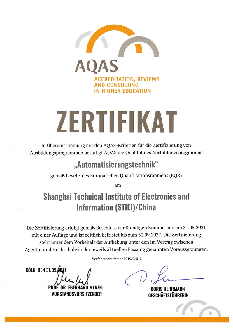 图5:2021年,中德合作机电一体化技术专业通过德国AQAS专业国际认证。